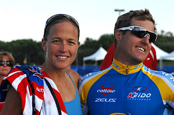Just what do you do to follow perfect five-for-five at the 2007 Life Time Fitness series that garnered a total of half a million dollars in prize money? Greg Bennett, who looks a little like an Aussie movie star playing a handsome, heroic but doomed soldier in Gallipoli, has learned the hard way to treat glory and defeat as twin impostors they are. In terms of sport, he joined Chris McCormack, Brad Beven, Emma Carney and Jackie Gallagher as unlucky favorites to lose form and miss the inaugural Aussie Olympic team. But instead of sulking, Bennett signed on with coach Lance Watson and became the training partner who helped push a then-unknown Canadian kid named Simon Whitfield to a 24-carat Olympic gold medal upset. In addition to that reflected glory, Bennett met the ravishingly beautiful and talented Laura Reback at Watson’s Victoria, British Columbia training camp and they married soon thereafter.