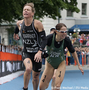 Warriner took a 4:29 advantage over Van Vlerken with a 22:45 swim, gave back 5:12 to Van Vlerken’s 2:22:20 bike, then wrapped up the win with 1:20:45 run that put 45 seconds on her Dutch rival. If you do the math, that meant that Warriner and her ITU swift transition skills made the 52-second margin following her 4:14:33 finish.