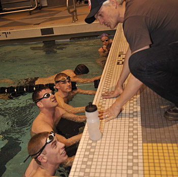 With some eyes blank with effort, the triathlon team members ran out along the Hudson River, and back to the outdoor track under a light dusting of snow. Team captain senior Nick Vandam led the Army triathletes back to the finish in a near-personal best 16:13, top men Brian Lagasse, Rob Sherry and Nick Sterghos finishing around 17 to 18 minutes, and 2008 National Collegiate Championship women’s 19th place finisher Randy Wintermantel clocking in about 19 and a half minutes. With runners’ efforts gauged by bright red cheeks and snot streaming from frozen noses, they ran on a day that in no way resembled the heat that awaited them April 19 at the 2009 Collegiate Nationals in Lubbock.