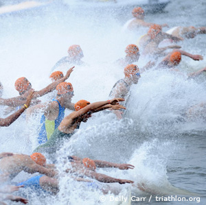 Atkinson, the 1999 ITU junior World Champion who finished 11th and top Aussie at the Beijing Olympics last August, joined Seear, brother of 2004 Aussie women’s Olympian Maxine Seear, and Joshua Amberger to get a gap in the river swim and break away at the start of the bike. After 20km, Atkinson and Seear dropped Amberger. The duo then worked hard to earn an 80-second cushion on 18 contenders, notably including Aussie Olympian Brad Kahlefeldt, two-time Olympian and 2008 Ironman 70.3 runner-up Andreas Raelert of Germany, French ITU contenders Laurent Vidal and David Hauss, New Zealand Olympian Shane Reed, Aussies Daniel Wilson and Gareth Halverson and US contenders Matt Chrabot and Ben Collins.