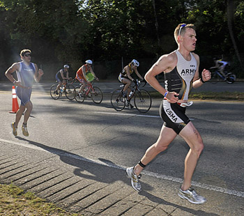 Coming on fast, Vandam dueled with Oskutis until he used his much improved run to pull away from his Navy rival last month at the Wildman Triathlon in central Florida. In 2007, Vandam, a former Army Division I swimmer, finished 14th overall in 1:57:36 at USAT Collegiate Nationals. Vandam swam 17:06, biked 1:00:39 and ran 37:33. In 2008 at Collegiate Nationals, Vandam scored 10th overall in 1:59:33, despite an atrocious (for him) 19:41 swim. His 1:00:51 was par for the bike leaders, and his 36:54 run was an improvement.