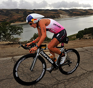 3:09 At mile-55 of the bike, Virginia Berasategui of Spain continues in front, but only :37 in front of Leanda Cave.