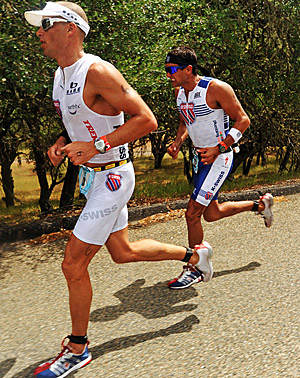 2:55 Rapp ran right at 1:20 in the recent Oceanside 70.3. So, he's not a bad runner. But it will take a big run today to hold off those in the pack just behind him.