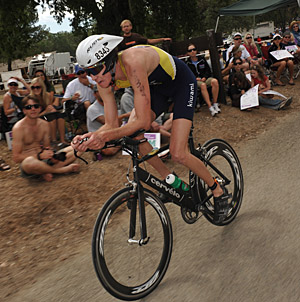 Leto, a 15:45 mile swimmer in college, blitzed his collegiate swim wave with a 17:16 for the 1500 meters that gave him nearly three minutes on dangerous rival Kenneth Rakestraw of UC Berkeley. Leto then gave back nearly 90 seconds on the first half of the challenging hilly bike. "Kenny almost caught me on the first half of the bike," said Leto. "My legs were a little tight after climbing Lynch Hill out of transition. But once they got warmed up, I had a much faster second half."