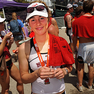 When the ride was over, Leto's 1:06:42 only gave away 32 seconds to Rakestraw, and Leto started the run with 2:30 in hand. "Kyle had a big lead out of the water and I knew I had to go hard to track him down," said Rakestraw, who finished 5th at USAT Collegiate Nationals two weeks ago. "He's a really great athlete and too bad he couldn’t race at Lubbock. He might have won."