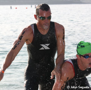 In a similar dynamic to the men’s race, Ironman stalwart Belinda Granger of Australia and 2006 Ironman 70.3 World Champion Samantha McGlone of Canada started off with nearly identical swims a few seconds over 27 minutes. On the bike, multiple Ironman champion Granger carved out a 2 minutes 46 seconds lead on McGlone with a second-best 2:27:18 bike which was 1 minute 46 seconds faster than Michellie Jones’ 2007 mark on the 56-mile cycling leg. Third place finisher Rhae Shaw of Seattle, Washington set a new bike course record with a 2:26:43 split on her way to a 4:46:08 overall finish time – eight minutes back of McGlone.