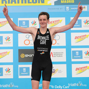 Just won a nail-biting duel with Lisa Norden of Sweden at Round 2 in Madrid. Excellent run makes her a fit for this flat course with no bike breakaways anticipated.