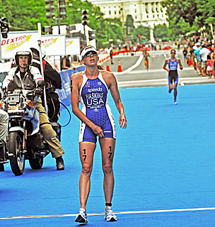 Still, Haskins, managed her slowly worsening injury extremely well, taking fourth overall and second American at the inaugural $700,000 Hy-Vee Triathlon World Cup in 2007, and nailing down the third and final US women’s slot for the Beijing Olympic Games by outdueling Sarah Groff at Hy-Vee last year.