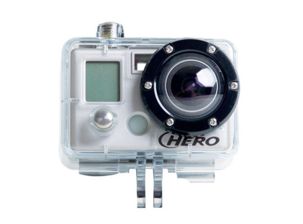 The GoPro camera mounts on your helmet, is shock and waterproof and allows you to film your next ride.