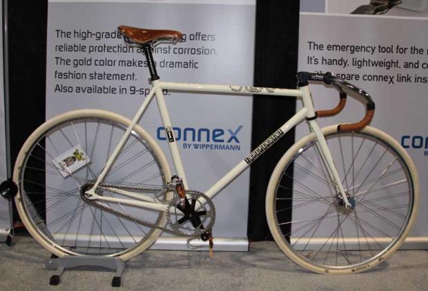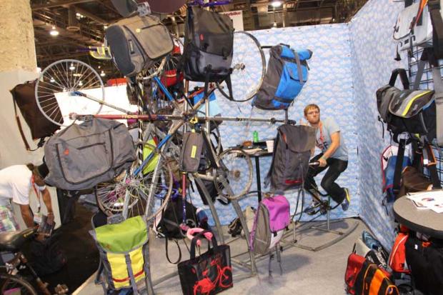 It is very popular for bike companies to place their bikes in the booths of other non competing companies.