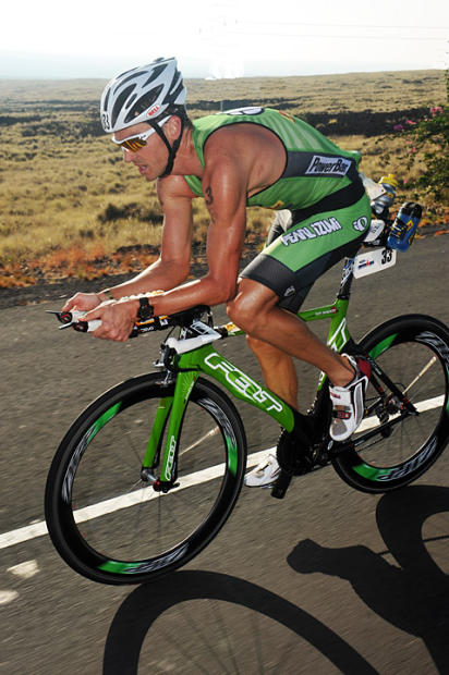 In 2004 and 2006 Normann Stadler proved you can win it on the bike. But as Stadler proved, you must also reserve enough energy to defend that lead on the run. This year Chris Lieto's 4:25:10 bike appeared to be the possible equal of Stadler's 2006 course record and probably a better effort than Torbjorn Sindballe's swift 2005 trip up and down the Queen K. That's because October 10 was sneaky hot with an aggravating dose of not so brisk winds that kept shifting in the riders' faces all day long. The resultant wear and tear led to DNFs for an all-star cast — Tim DeBoom, Patrick Vernay, Thomas Hellriegel, Michael Goehner, Marino Vanhoenacker, Normann Stadler, and a wicked noble but achingly slow 5:38:43 marathon after a third-best 4:31:36 bike for 6-foot 5-inch Ain Alar-Juhanson.