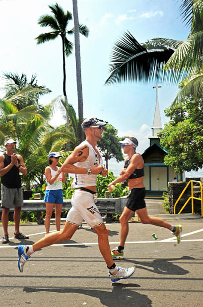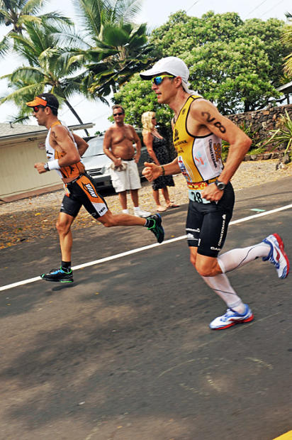 Timo Bracht passed last year’s runner-up Eneko Llanos on Alii Drive. Bracht ran 2:56:27 to finish 6th while Llanos faded to 14th with a 3:05:02 run.