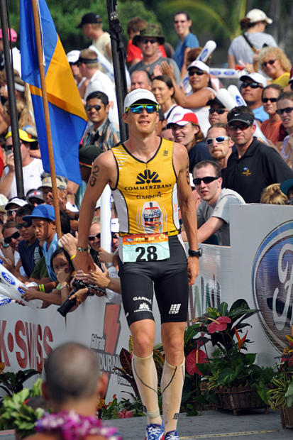 Kona rookie Andreas Raelert dueled Crowie for 9 miles of the run before settling at third place in 8:24:32, running a second-best 2:51:04.