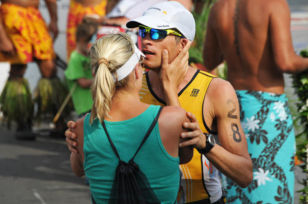 Chris Lieto thanks a higher power for his second place in 8:22:56. His previous best had been 6th in 2007. But on this day, it took Craig Alexander 22 miles of the marathon before taking charge of the race. Lieto, the top cyclist in 4:25:10, worked hard to build a run to challenge for the title.