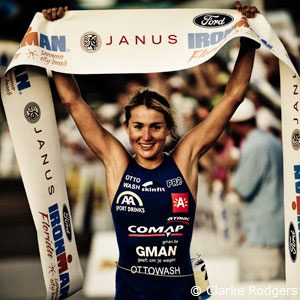 Starting the run, Kolters had a 2:37 lead on Kolters, with Goos 3:24 down and Bayliss, who DNF’d at Ironman Hawaii, 9:01 back. Kolters, who was fighting a losing battle with a severe pre race cold, hung on grimly until Mile 9, when Goos took over. By Mile 13, Kolters was 3:06 back and pulled out a short while later. By Mile 18, Bayliss in second, 3:56 back, Wiklund 6:07 back in third, and Kozulina charging hard. By Mile 22, Bayliss faded to 5:15 back of the leader, with Kozulina right on her heels.