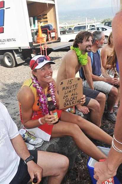 Sheena Miller smiles, holding a sign crafted by a modest Canadian wit: “15 Minute Limit on all Glory Basking.” Still, her 8:57:24 run and 30:38:28 overall time was reason enough to celebrate.
