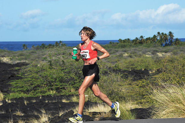 Suzy Degazon manages a wry smile after she wrapped up her 12th straight Ultraman with a 10:44:21 run and a 32:32:19 overall time.