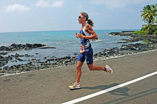 Chrissie Wellington cruises past the ocean on Alii Drive on her way to a Kona course record.