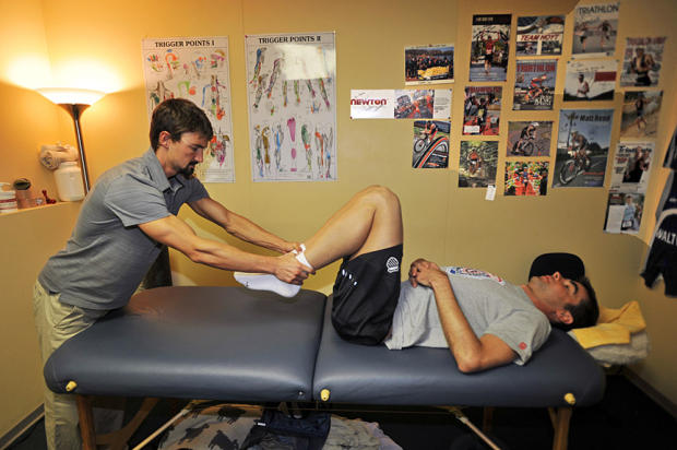 Later, Schadle works hard on O'Donnell's hamstring.