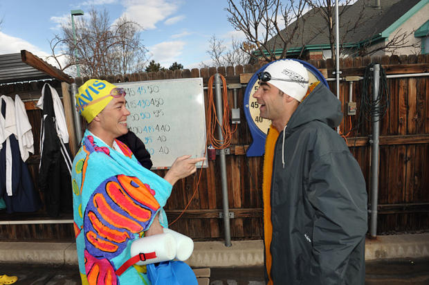Two full-time Boulder resident world champions – Tim O’Donnell and Julie Dibens – join their fast lane compatriots in the hot tub after Flatirons swim workout.