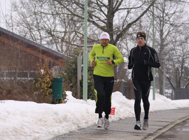 Despite the freezing temps, Unger opted to run without gloves. But only because he left the sponsors gloves at home and wasn't going to wear non sponsored items with media present
