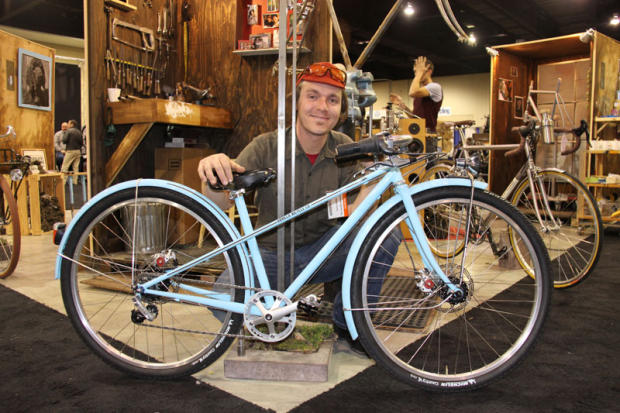 Sacha White of Vanilla Bicycles poses with his daughter's bike