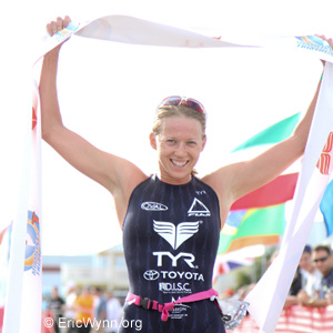 Out on that 10k run, Haskins finally got away from McLarty. Her 36:26 run time was the fastest among the women gave her the 2010 Miami Internation Triathlon title with a comfortable margin. Petersen added a second fastest run time to her top bike split and that gave her second place. McLarty's fine performances during the swim and bike gave her the final podium spot.