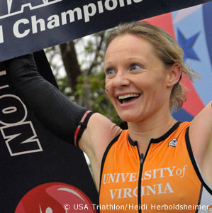 In the world of USAT Collegiate Nationals, in which grad students and professionals mix with undergrads, Kelleher’s win was still relatively unexpected, although she scored a win in the amateur division of The Nation's Triathlon in Washington DC last September. Kelleher, who ran track and cross country asd an undergraduate for Dartmouth and SMU is a relative newcomer to triathlon and came off the bike in third place.
