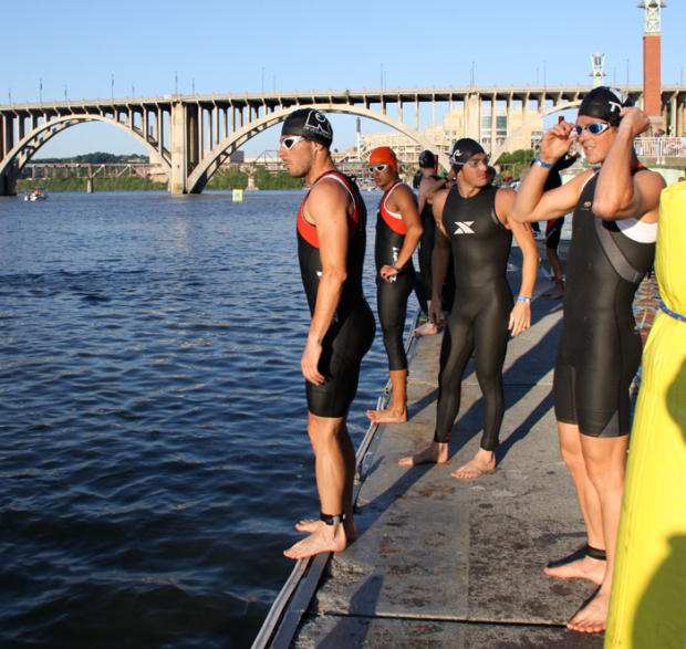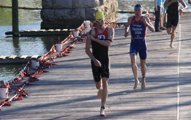 Cameron Dye and Brian Fleischmann were first and second out of the water.