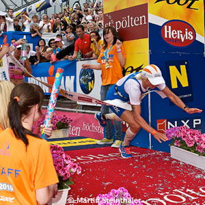 Filip Ospaly used a course record time of 3:46:02 to defeat a stellar field at the 2010 Ironman 70.3 Austria in St. Pölten. Yvonne Van Vlerken also broke the course record, but had to out-sprint Erika Csomor by 0.2 seconds to take the win.