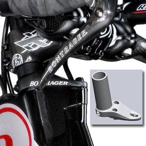 One element of modularity available to you without ditching the Speed Concept's built-in stem is to change to an extension made by another company, and assuming that company makes an armrest system that clamps onto the extension. Profile Design makes aerobars in this theme, as did the Blackwell company while it was in business. Conversely, you might keep Bontrager's armrests, but simply use another company's extension. This, because Bontrager does use 22.2mm as its extension tube diameter. So there is some modularity available when using Bontrager's bars on the 9 Series Speed Concept.