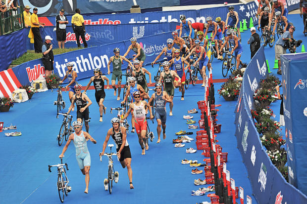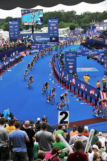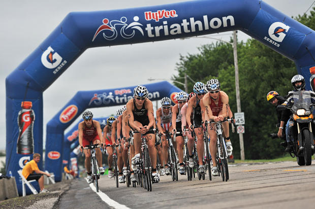 The men’s bike devolved into a 55-man lead pack proceeding in parade formation through the Hy-Vee transition and finish line area.