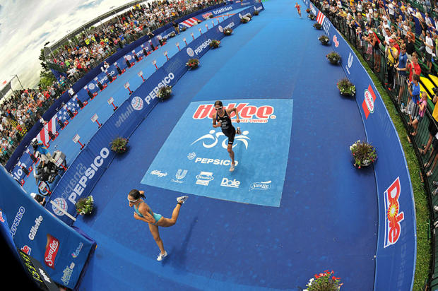 After last year’s amazing 5-man finish line sprint at the million dollar Hy-Vee Triathlon, fellow photographer Paul Phillips and I decided to fight the last war, so to speak. So we set up a remote fisheye camera with motor drive looking down at the finish line area. Well, no close ones this year, but the Hy-Vee stands were going nuts as Emma Moffatt outsprinted Helen Jenkins for SECOND.