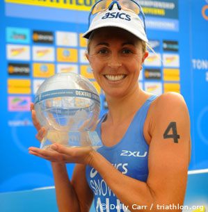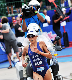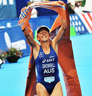 The curtain of her invincibility had previously lifted a few times – when Vanessa Fernandes took many ITU World Cups and a world title in 2008 at the time when Snowsill was off form thanks to illness or injury. But Snowsill’s vulnerability looked greatest when training partner and fellow Emma – Miss Moffatt – beat Snowsill at the Washington DC round of the 2009 World Championship Series and outran Snowy at Hy-Vee for the $200,000 pot of gold later that month.