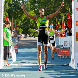 Filip Ospaly grabbed the win at the 2010 Nautica New York City Triathlon and with it helped his efforts in the Race to the Toyota Cup. Rebeccah Wassner won the women's title.