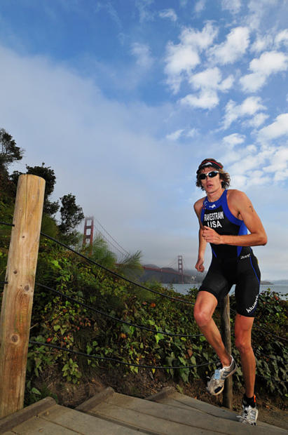 The pro field was a bit smaller but prize money was a solid $40,000, which outranked two Life Time Fitness series events. But the races were hot and the joyous spectacle of racing through San Francisco Bay, riding through Fort Point and the Presidio, past the golf course and the Legion of Honor Museum, down the Cliff House decline, into and out of Golden Gate Park, then running out to Baker Beach , back up the sand ladder and finishing on the Marina grass chute was, once again, exuberant, challenging and fun.