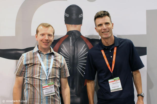 Dan Rishworth and Steve Fleck of Nineteen wetsuits were cornered by the slowtwitch photographer.