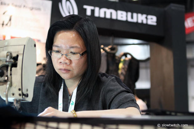 Hard at work in the Timbuk2 booth to get custom bags ready during the show.