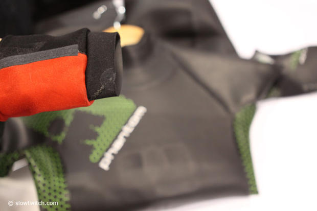 A collar inside the very thin 1mm sleeves of the brand new Aquasphere Phantom wetsuit is designed to prevent water from entering there.