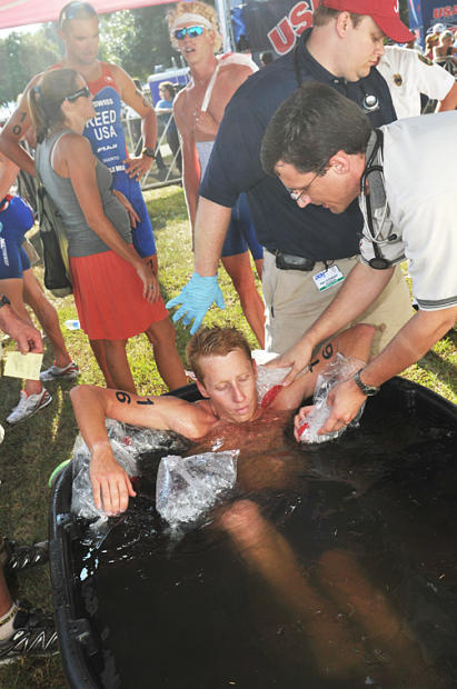Steven Sexton finished 5th, then needed an ice bath to keep a dangerously rising core temperature under control.