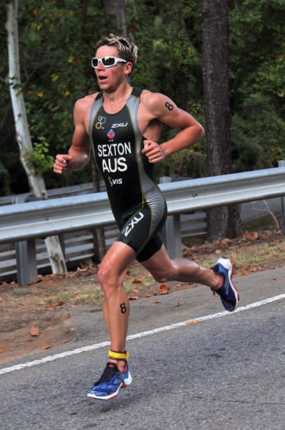 Brendan Sexton tore out of T2 into the lead, got passed by Jarrod Shoemaker after a kilometer, but retook the lead and the win on the final lap.