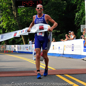 Docherty then clocked a 33:40 run split that was 2.5 minutes faster than the time of Starykowicz and with slightly faster transitions he had a 46 second lead at the end to take the win. But Starykowicz wasn't his only worry. Gomez recorded the fastest run on the day with 31:57 split and closed in to within 13 seconds by the time he hit the finishline. But today that effort of Gomez was only good for second place. Starykowicz held on to third place.