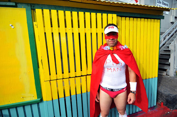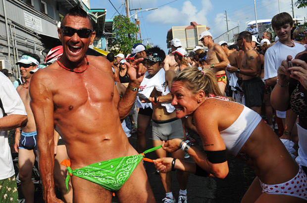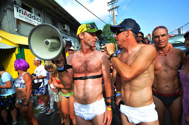 The 13th annual crusade against Euros wearing Speedos in Kona town during Ironman was led by Dr. Frankensteins of the run – Paul Huddle and Roch Frey
