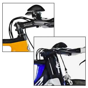 Fortunately, the Triad EX is spec'd with a standard fork (1" steerer), on which you can use any aftermarket stem and aerobar you want. The Aerus TTB Carbon might be your perfect solution, but, if not, a flat (horizontal) stem with a low profile aerobar seems to have been the way Andreas Raelert got the most out of his Blue. It might be the way you may get the most out of yours.