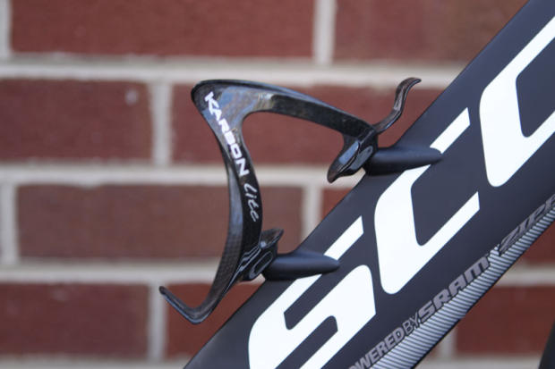A Profile Design Karbon Lite cage on the down tube is the only cage currently on the bike