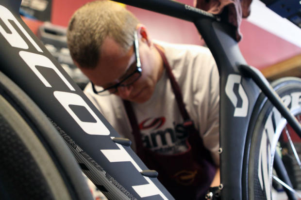 Rob Wall of Cycletherapy in Clemmons, NC focused on the task at hand.