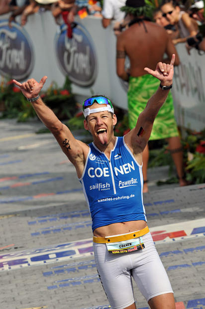 Clemens Conen exults at the Kona finish.