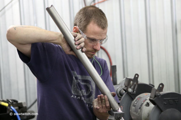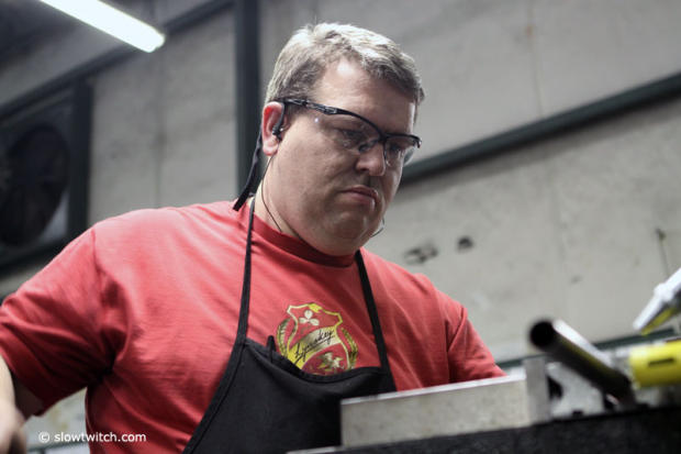 The buffing of a frame is quite time consuming and Nicholas Martinez is very focused at work.