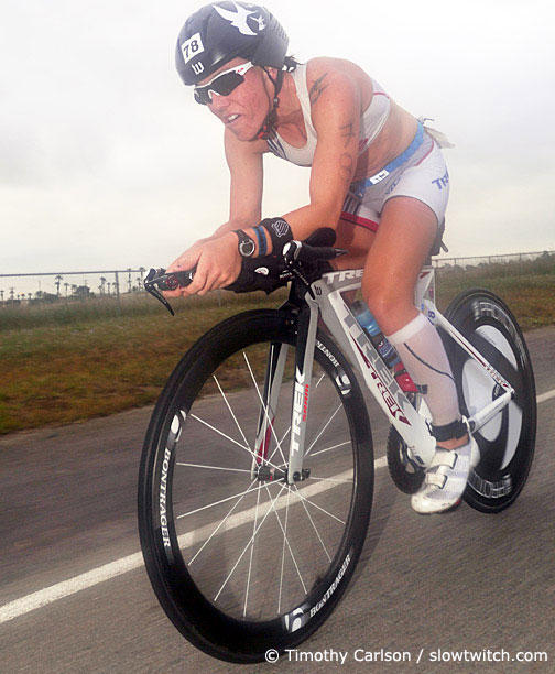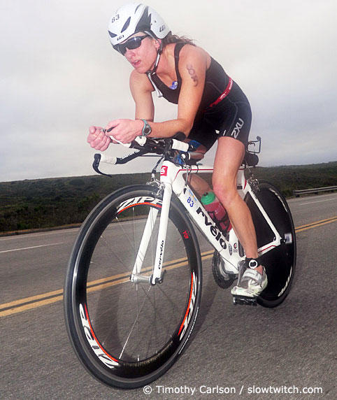 Melanie McQuaid was first off the bike at the 70.3 California.
