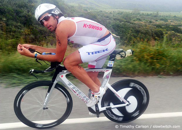 Former Pro mountain biker Michael Weiss put down the fastest bike split on the way to 3rd place.